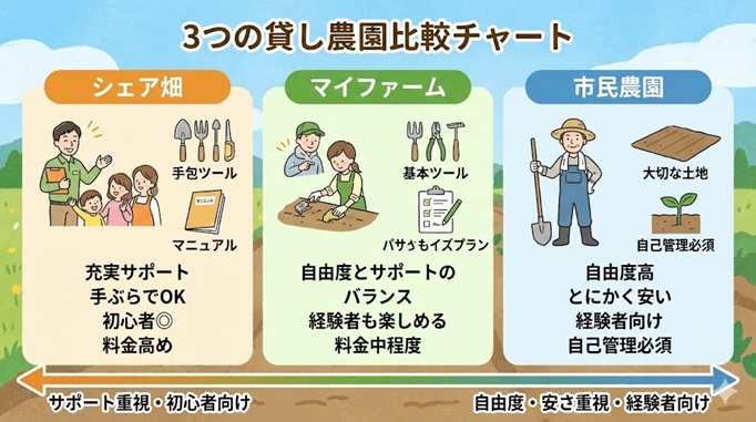 徹底比較!「シェア畑」vs「市民農園」vs「マイファーム」