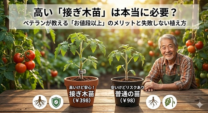 今回は、ベテラン菜園家の私が、なぜ高価な接ぎ木苗を強くおすすめするのか、その「お値段以上」のメリットと、絶対に失敗しないための植え方のコツを、包み隠さずお話しします。