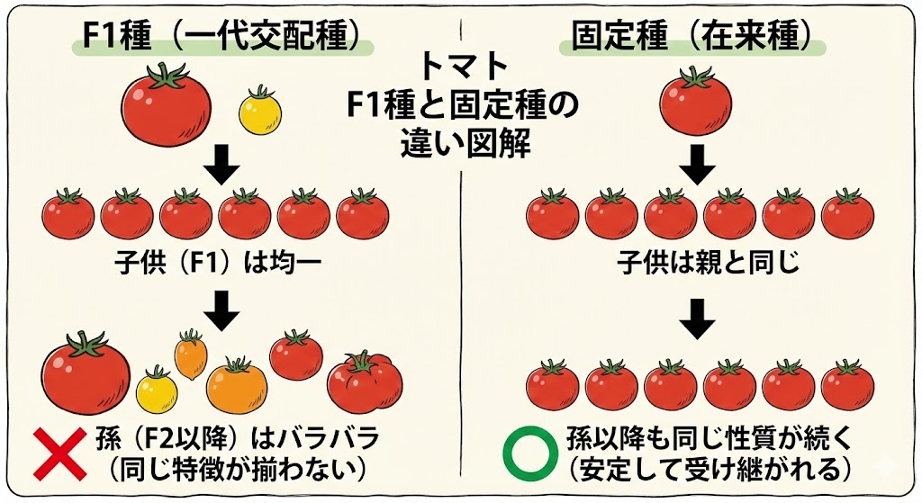 それは、あなたが育てたトマトが「F1種(交配種)」なのか、「固定種(在来種)」なのか、という点です。